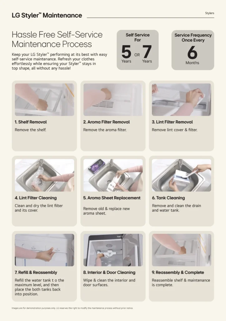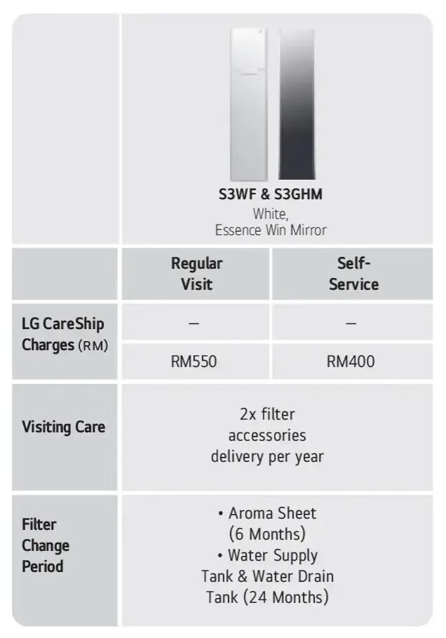 LG CareShip Plan adalah pelan servis berkala untuk memastikan Styler anda sentiasa bersih dan berfungsi dengan baik.